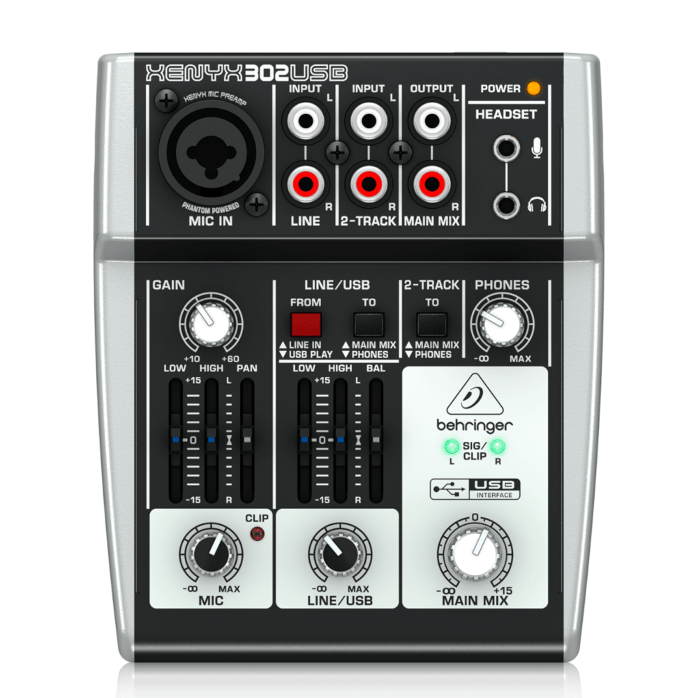Mezclador Análogo. 1 entrada híbrida (xlr o línea) 1 entrada estéreo de línea por rca Ecualizador gráfico de 3 bandas para cada canal. Puerto usb de salida para grabación Entrada de micrófono y salida de audífonos para headset Alimentacion vía USB, cable y adaptador incluido.