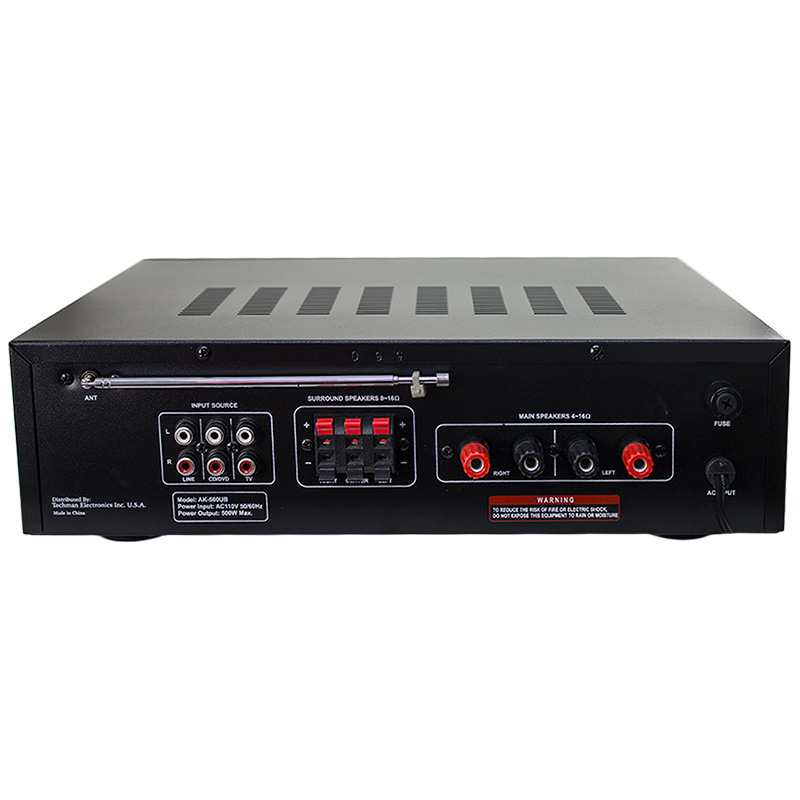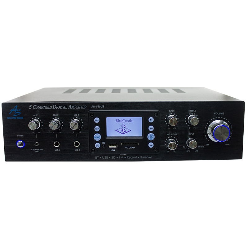 AK-560UB Amplificador Stereo 5 CH 500W con Reproductor USB/SD-BT-FM y Grabación American Sound.