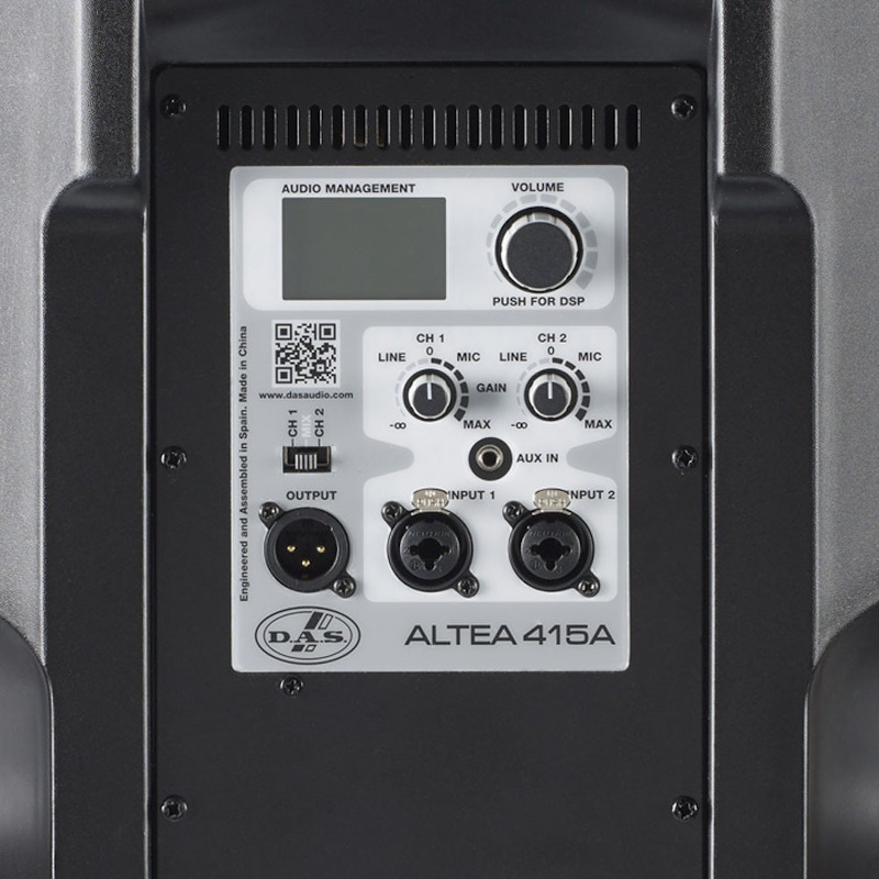 Los Altea-415A y Altea-412A comparten el mismo recinto de alta tecnología de los productos Altea-700 Series. Incorporan un innovador amplificador Clase D de doble canal y 800 W pico. La interfaz DAScontrol™ permite a los usuarios configurar los preajustes, modos de EQ, retardo, control de ganancia y mezcla de las fuentes de señal, por medio de un DSP de 24-bit alta gama, y una pantalla LCD situada en la parte trasera.