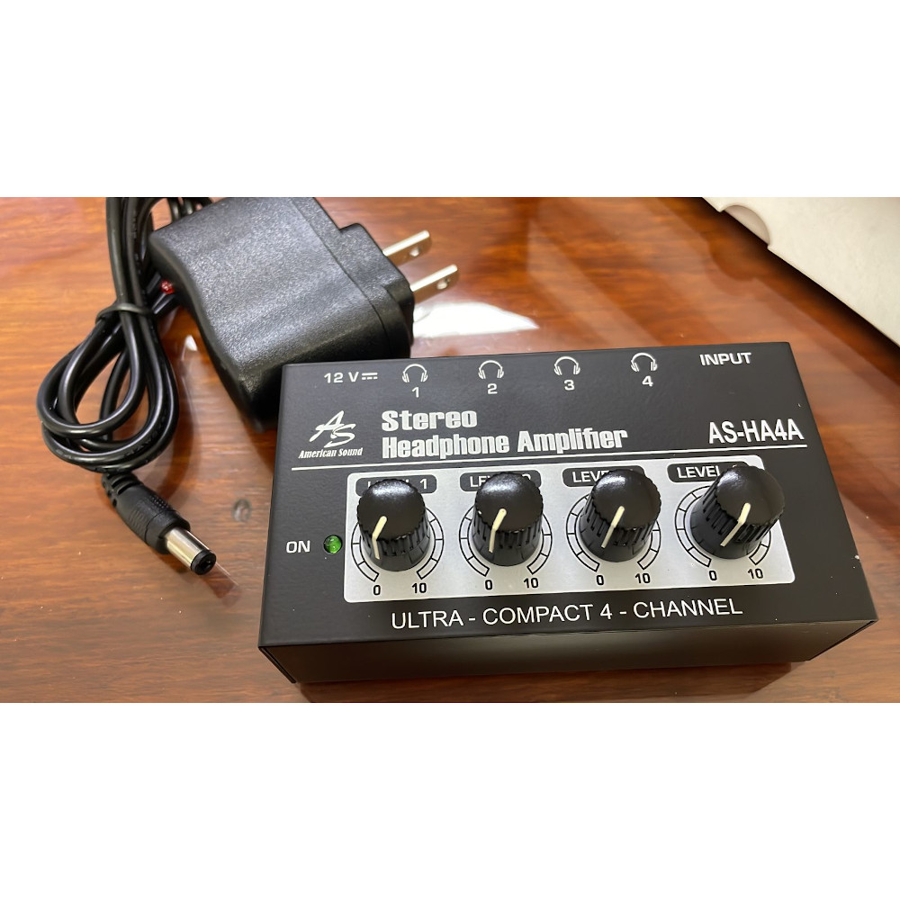 Amplificador de audifonos 4 salidas de auriculares estéreo con control de volumen Adaptador DC 12V