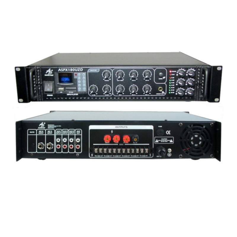 ASPX180UZD Amplificador de Linea Sonido Ambiental 180W con USB y Bluetooth American Sound