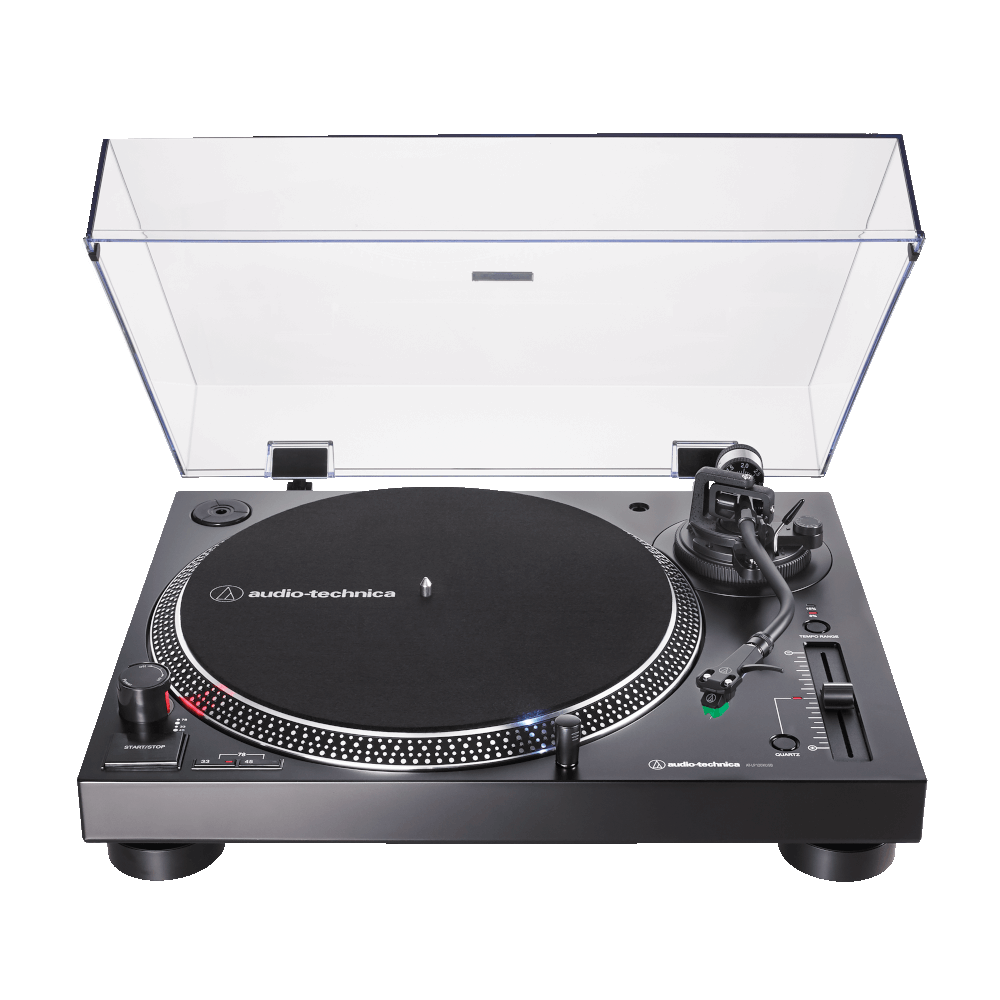 Versión actualizada del aclamado AT-LP120-USB, este tocadiscos cuenta con un motor de accionamiento directo servocontrolado de CC, junto con un control antipatinaje dinámico ajustable y un preamplificador fonográfico.