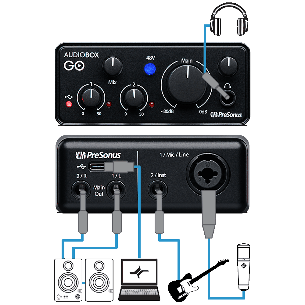 Ultra asequible, sorprendentemente potente y lo suficientemente pequeña como para caber en el bolsillo, AudioBox GO™ le ofrece todas las conexiones que necesita para grabar sobre la marcha o en su estudio doméstico. Tanto si está grabando un riff de guitarra en un ensayo como un álbum completo en solitario en su habitación, tendrá todas las herramientas que necesita para crear como un profesional, desde el principio. Compatible tanto con ordenadores como con dispositivos móviles, la AudioBox GO es perfecta para cualquiera que quiera ponerse a grabar enseguida.