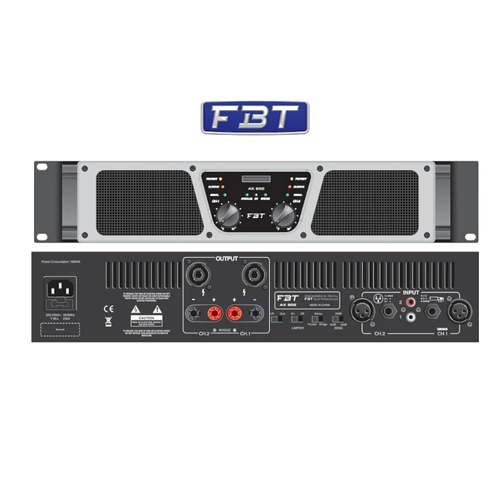 Con una construcción robusta, un diseño elegante, especificaciones impresionantes, excelente relación calidad-precio y eficiencia en cualquier aplicación, FBT presenta con orgullo la nueva serie AX de amplificadores de potencia, la pareja perfecta para sistemas de altavoces de refuerzo de sonido. La serie AX consta de cuatro modelos de montaje en rack de 2U, de 800 a 3000 vatios, todos diseñados con sofisticados circuitos de amplificación para una mejor calidad, estabilidad y fiabilidad. Todos están equipados con modo de funcionamiento estéreo-paralelo-puente, selector de sensibilidad dB (26-29-32 dB), limitador, toma de tierra, entradas XLR/Jack (más entrada RCA adicional en el AX 800) y salidas Speakon/bornes de conexión.