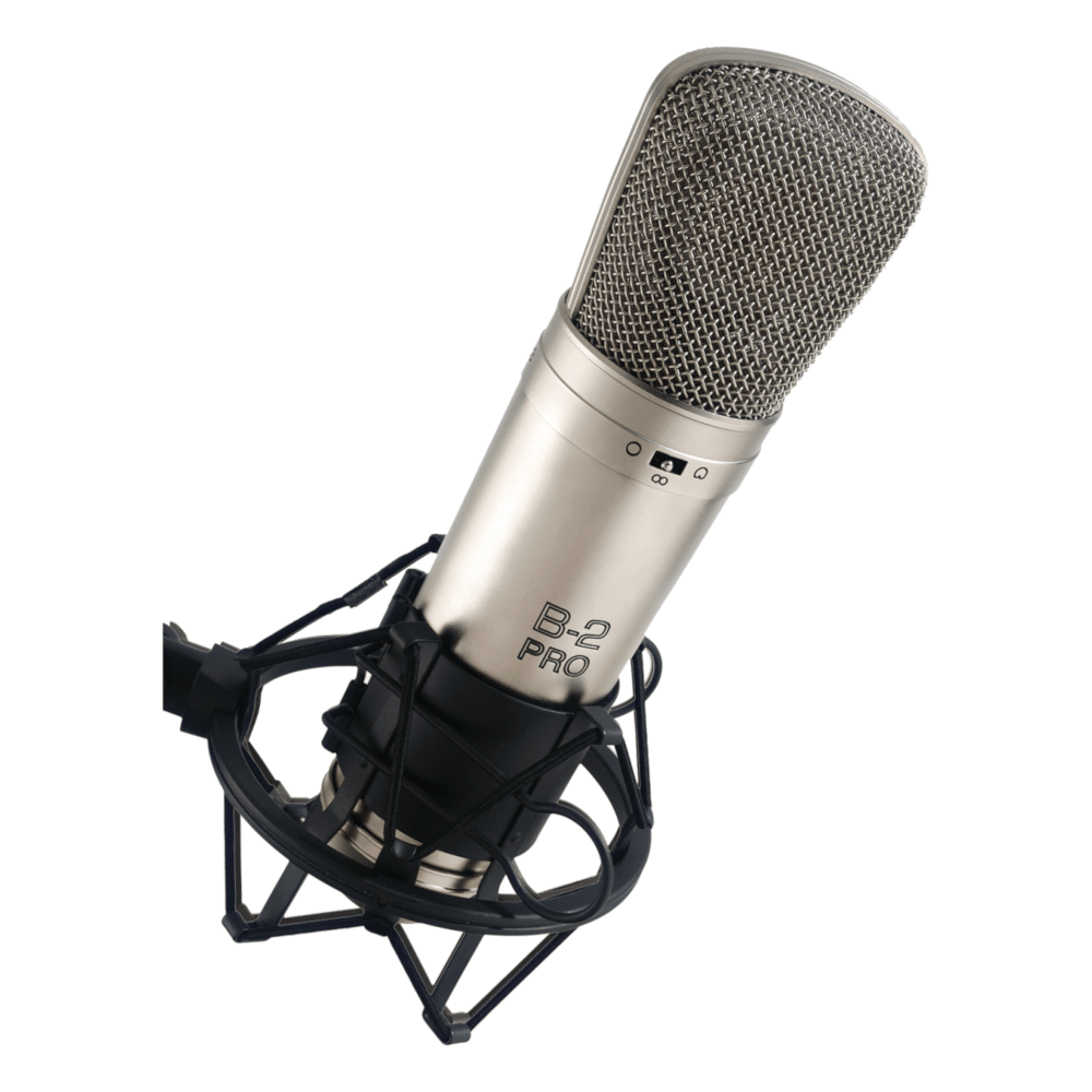 Micrófono de Condensador. Doble diafragma de 1″ bañado en oro. Patrón polar seleccionable: cardioide, bidireccional, omnidireccional. Pad atenuador de -10db. Filtro pasa altos. Incluye estuche, shockmount y filtro cortavientos.
