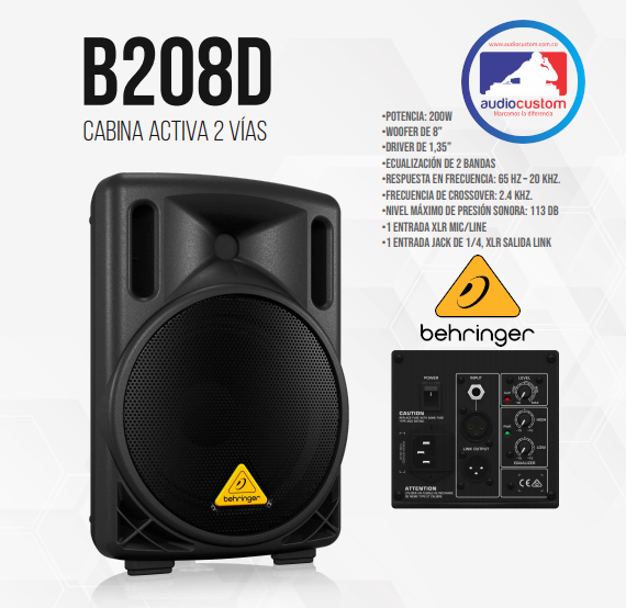El bafle activo EUROLIVE B208D es exactamente lo que esperas de Behringer, más potencia y funciones y totalmente más accesible. Nuestros ingenieros se han superado a sí mismos, creando una solución autónoma de PA que fusiona la tecnología de amplificador de potencia Clase D de 200 watts, una sección de entrada Mic/Line de ruido ultra bajo con control de volumen, DSP integrado y una portabilidad excepcional.