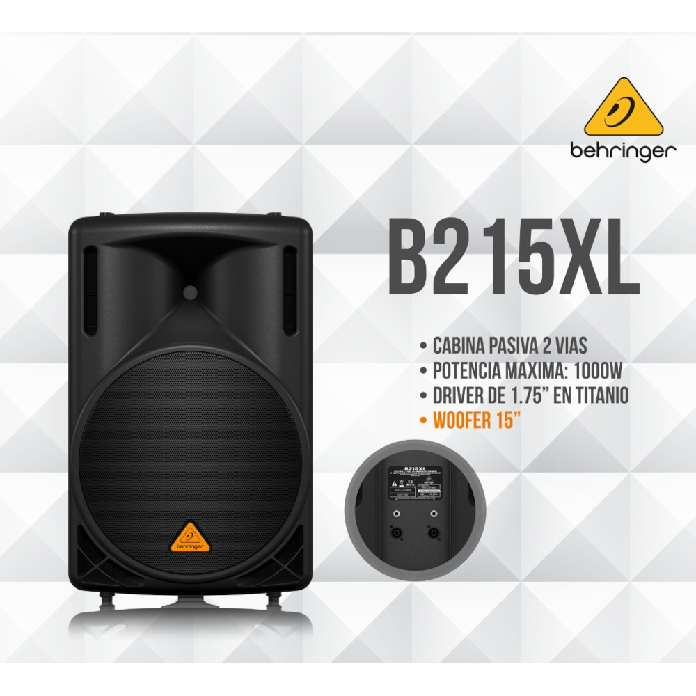 La B215XL con un woofer de 15″ y el driver de 1,75″ proporcionan un sonido potente y una impedancia de 8Ω hace que sea fácil encontrar el amplificador perfecto para el trabajo.