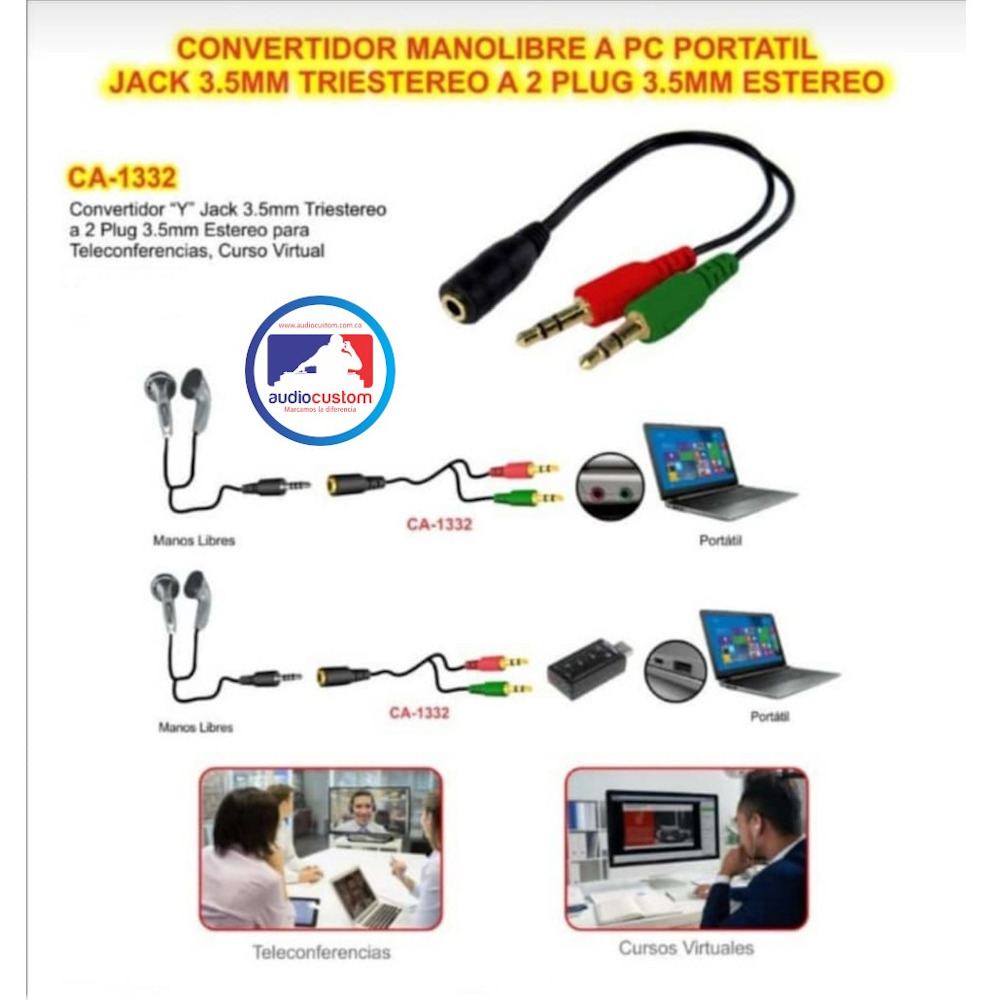 DOS PUERTOS MACHO: UNO PARA CONECTOR DE AURICULARES EN TU PC/ORDENADOR PORTÁTIL, EL OTRO PARA CONECTOR DE MICRÓFONO EN TU PC/ORDENADOR PORTÁTIL.