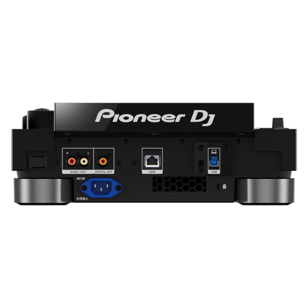Por otro lado, ahora la parte superior del CDJ es enteramente de aluminio y no de plástico como en anteriores modelos. Y en la parte de conexiones se incorpora un conector de corriente Hardware Unlock que evita desconexiones por accidente.