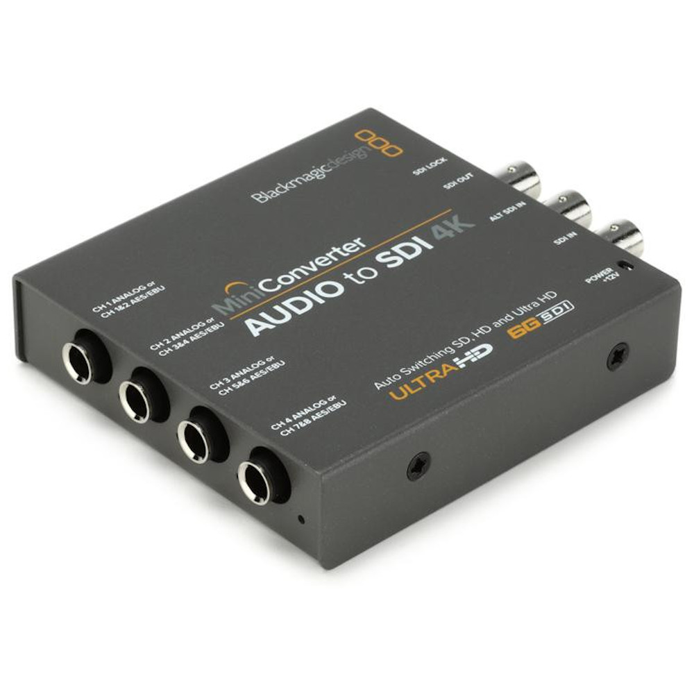 MINI CONVERTIDOR AUDIO A SDI 4K. Mini Convertidor que permite obtener contenidos analógicos por componentes, NTSC y PAL (SD/HD) a partir de señales SDI en formato SD, HD, 3G y 6G. Además, brinda la posibilidad de convertir señales en definición UHD, a efectos de obtener material de menor