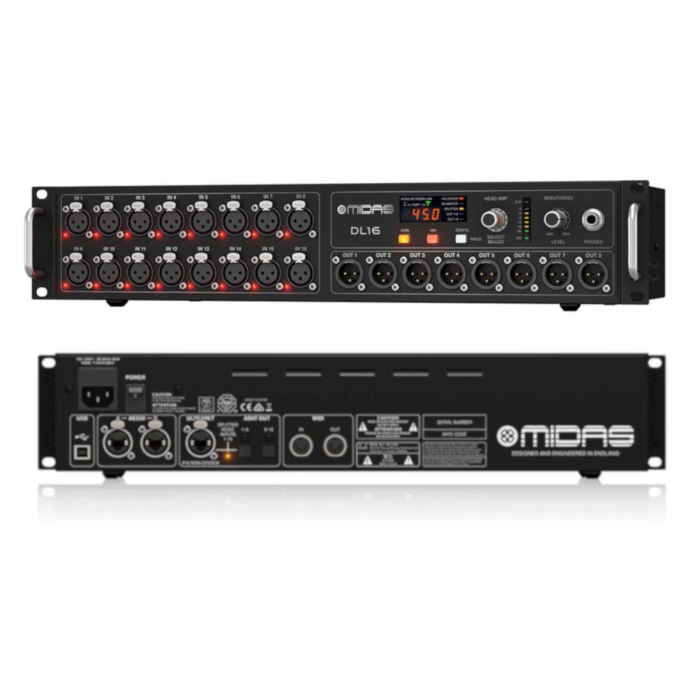 Y, por si fuera poco, si necesitas más entradas remotas en tu escenario puedes conectar hasta 3 (Tres) de los DL16 en cascadas por la conexión de AES50, brindándote más de 32 canales bidireccionales y 16 salidas balanceadas.