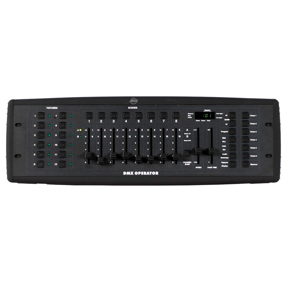 El controlador de operador DMX de ADJ tiene 12 botones de accesorios individuales que le permiten controlar hasta 12 dispositivos de iluminación inteligentes separados de hasta 16 canales DMX cada uno. Con el controlador de operador DMX de ADJ, puede grabar hasta 6 chases con tiempos de fundido y velocidades de paso separadas. Los 8 faders de canal individuales le proporcionaron facilidad de control de cualquier luz DMX512 en movimiento.