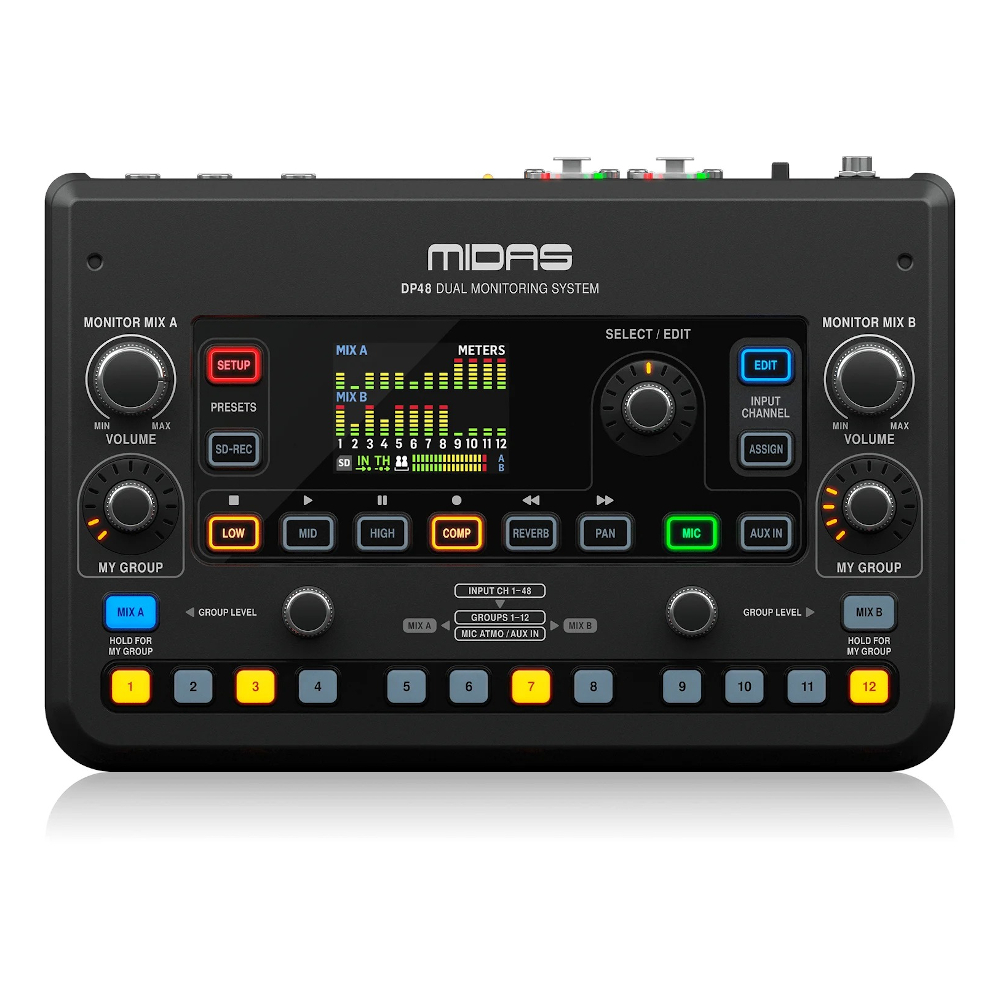 El MIDAS DP48 es un mezclador personal digital de 48 canales, diseñado para brindar a los músicos el control total de su mezcla de monitoreo. Con una interfaz intuitiva y pantalla a color, el DP48 permite ajustar el volumen, el panorama y los efectos de cada canal de forma individual. Ideal para aplicaciones en vivo y en estudio, este mezclador personal ofrece conectividad AES50 para integración perfecta con sistemas de mezcla digital.