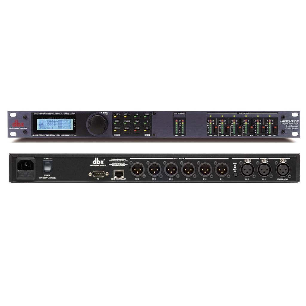 El DriveRack 260 continúa el legado de la serie DriveRack, que ha sido creada por la compañía que ha estado redefiniendo el estándar de procesamiento de señales por más de 30 años. El DriveRack 260 fue diseñado con el propósito y la visión de proporcionar procesamiento de señal de vanguardia, utilizando una interfaz de usuario sencilla e intuitiva. Este objetivo se ha logrado al ofrecer dos canales independientes de potencia de procesamiento con un ecualizador gráfico de 28 bandas, un módulo compresor estéreo dbx estándar de la industria, un eliminador de realimentación y el Sintetizador Subarmónico 120A en la entrada, con un sistema de salida de seis canales que incluye parámetros EQs, limitadores PeakStopPlus® (para brindar protección contra los estallidos de las cabinas) y retardo de alineación. Estas características combinadas con el sistema de configuración del asistente y el control completo de GUI DriveWare™ representan un diseño metódico que garantiza un procesamiento óptimo incluido en un sistema completamente escalable.