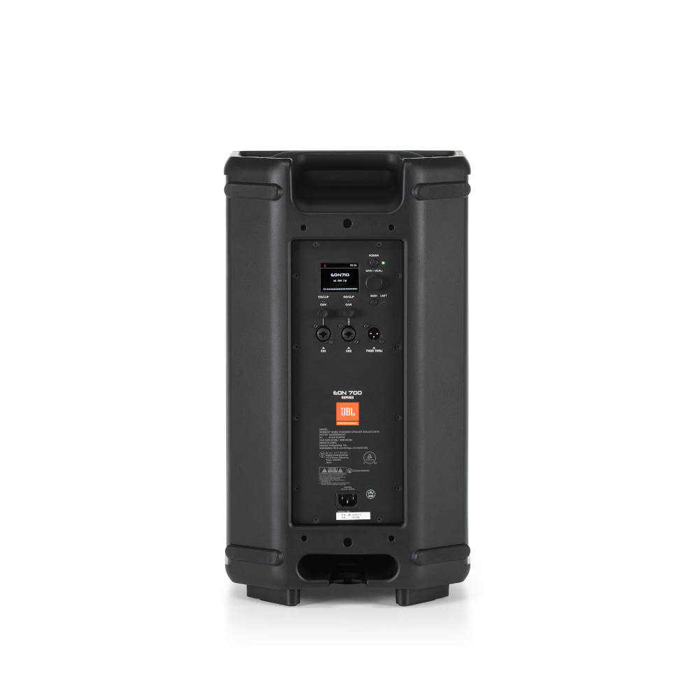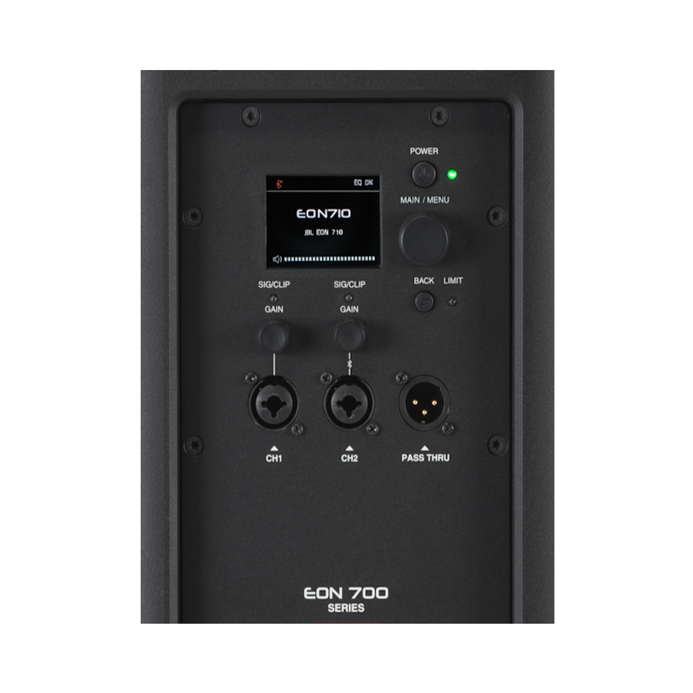 El woofer del EON710 está rediseñado para una menor impedancia y una mayor eficiencia, una bocina mejorada ofrece un ancho de haz fuera del eje suave y el potente controlador de compresión 2414H de JBL cuenta con un imán de neodimio de primera calidad para una respuesta equilibrada en un espacio ligero. El altavoz está alimentado por 1.300 vatios de amplificación Clase D discreta y ultraeficiente, para un sonido limpio y claro. Todo se suma a una cobertura superior, consistencia e inteligibilidad en cualquier volumen.