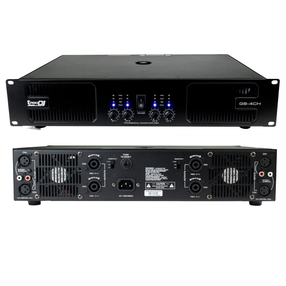 El amplificador de potencia G8-4CH de PRO DJ es la solución ideal para sistemas de sonido profesional que requieren múltiples canales con una entrega de potencia estable y eficiente. Con una potencia de 800W por canal a 8Ω y 1150W por canal a 4Ω, este amplificador de clase H garantiza alto rendimiento y fiabilidad en escenarios exigentes. Su sistema de refrigeración avanzado y sus múltiples protecciones aseguran un funcionamiento seguro y estable en cualquier instalación.