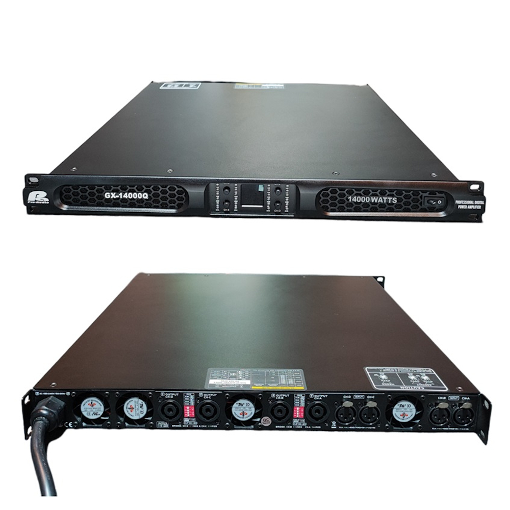 La serie de amplificadores de sonido GX de Pa Pro Audio representan una nueva era en potencia asequible y de calidad. Pensados para sistemas pasivos de músicos, DJs y artistas, así como iglesias, discotecas y bares. La nueva versión GX 140000Q es un diseño renovado de su famoso antecesor con un diseño elegante. Este amplificador de 4 canales ofrece una potencia de 14000w.