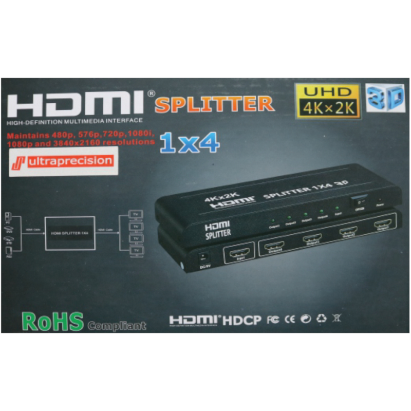 Distribuidor de vídeo HDMI, 1 fuente a 4 displays simultáneamente. Solución ideal para control de centro de datos,señalización digital, entornos corporativos, teatros en casa,etc. Instalación en segundos sin necesidad de software.Soporta 4K, 3D, resolución de vídeo hasta 1080p, 2,25 Gbps de ancho de banda por canal. Carcasa metálica.