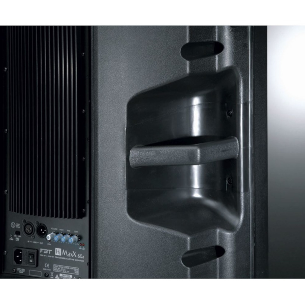 - 4 puntos de anclaje M10, tapa superior de 35 mm ø (1,38”) para colocación de soporte de altavoz y brida de montaje del soporte de pared, 2 asas de transporte integradas.