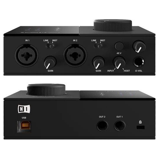 Con la INTERFAZ DE AUDIO KOMPLETE AUDIO 2, capturar sonidos estéreo es rapidísimo. Tiene la misma calidad de sonido espectacular de la AUDIO 1, pero con un poco más de flexibilidad. Conecta a la vez dos micrófonos usando las entradas combi XLR/jack. Conecta monitores de estudio o engánchate al sistema de audio de directo con las salidas dobles de jack.