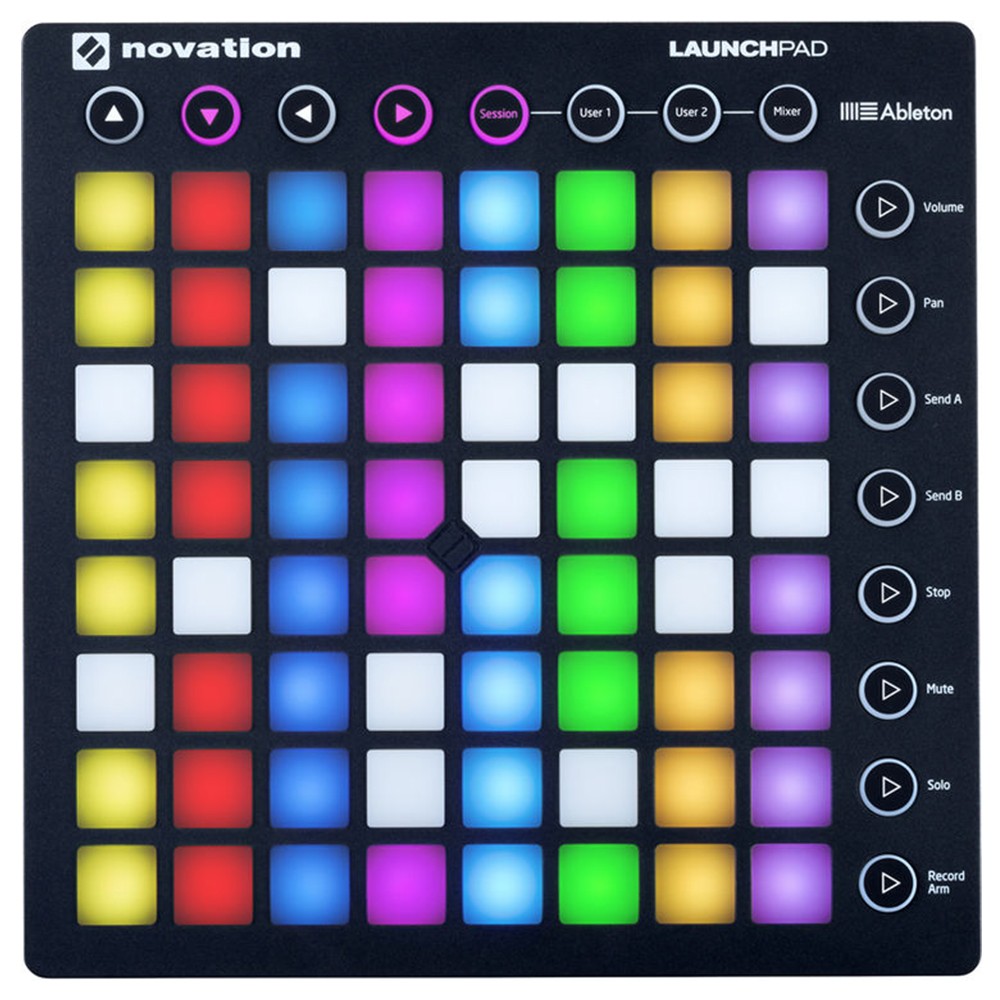 Controlador midi usb Novation, 64 almohadillas retroiluminadas RGB, Las almohadillas coinciden con el color de tus clips, Arranque y parada de bucles, huellas de brazos, Controle el volumen, las paletas y los envíos, Bus USB alimentado, Novation Bass Station y VST / AU Plug-In.