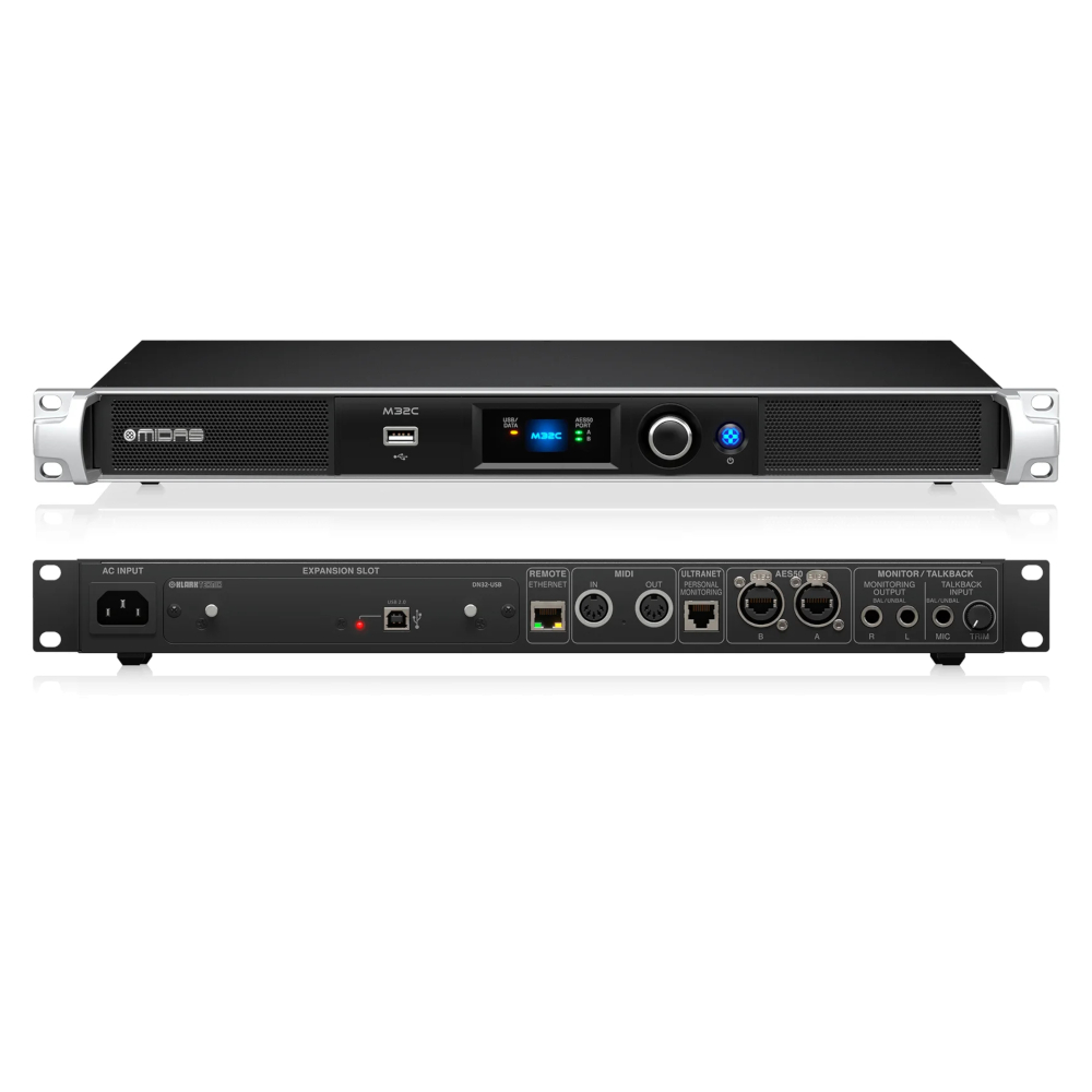 La M32C de MIDAS es una consola digital tipo rack diseñada para sonido en vivo e instalaciones fijas. Gracias a su integración con red AES50 y Snake digital, permite conectar hasta 40 canales de entrada y 96 salidas, ofreciendo gran flexibilidad en entornos de producción profesional. Su procesamiento de 40 bits garantiza una calidad de audio excepcional, y su construcción en aluminio y acero asegura durabilidad y rendimiento confiable.