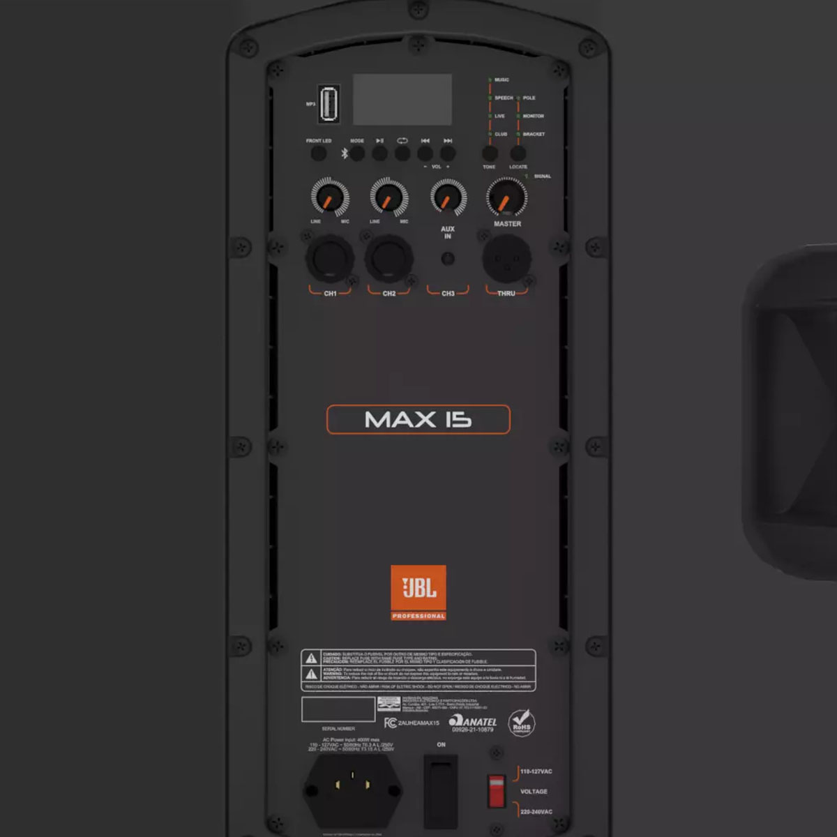 La cabina de sonido JBL MAX 15 ofrece calidad de audio y volumen de referencia excepcionales, total facilidad de uso, un conjunto de funciones sin igual y el precio más asequible de JBL. Con un simple toque de botón, elige el mejor tono entre cinco preajustes y tres más para la aplicación, dos entradas combinadas entre micrófono e instrumento con cambio automático entre micrófono y línea a medida que se gira la perilla de volumen. Reproduzca música, bandas sonoras o reproduzca pistas con Bluetooth® Audio Streaming, o relájese escuchando su música favorita a través del MP3 Pendrive con cambio de carpeta en una pantalla de alta calidad. Un gabinete de forma única para aplicaciones de tripode con dos opciones de alcance, posicionamiento en modo monitor o levantado a través de tres puntos de elevación, una pantalla resistente con un diseño moderno y armonioso que soporta largas horas de uso.