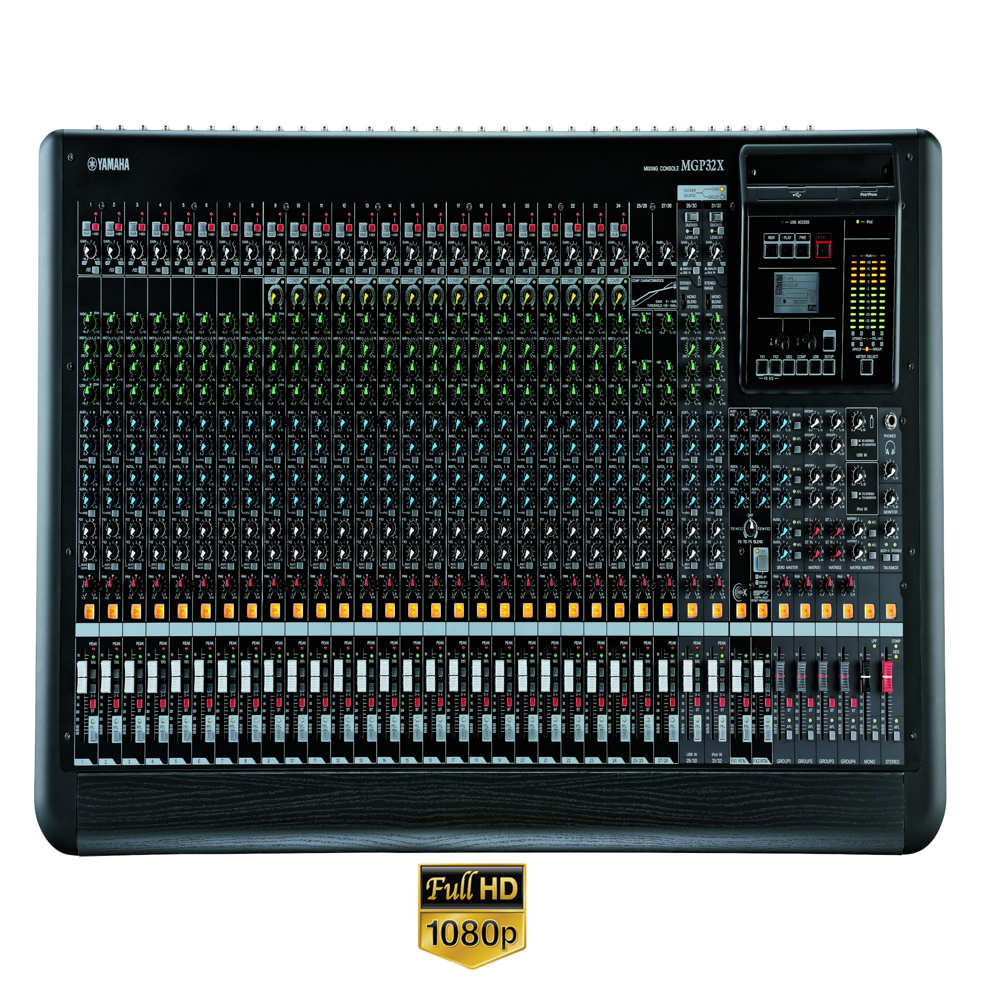 El nuevo ecualizador gráfico posee 14 bandas y 9 bandas Flex, que se pueden controlar fácilmente a través de una pantalla interna. Este ecualizador Flex también se utiliza en las mesas de la serie CL de nivel profesional de Yamaha. Al limitar el número de bandas para potenciar y recortar la señal, el procesamiento digital de la señal (DSP) puede reducir los filtros 1/3 de octava, permitiendo al usuario situar el filtro en el rango en el que se precisan los ajustes. Las 31 posiciones de filtro disponibles permiten realizar ajustes muy finos. Por otra parte, localizar y reducir el acople resulta rápido y sencillo mediante el uso de controles de desviación y ganancia (offset/gain), para señalar las frecuencias vulnerables antes de que se produzca el acople.