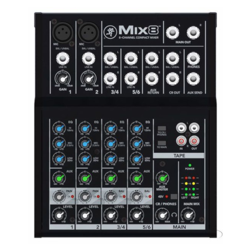 El Mackie Mix8 es un 8 canales vivo sonido mezclador compacto robusto, que ofrece fiabilidad robusta actuación combinada con la probada calidad audio que esperas de Mackie. El Mix8 está equipado con un conjunto de características sencillas y simples controles es ideal para una amplia gama de aplicaciones de audio.