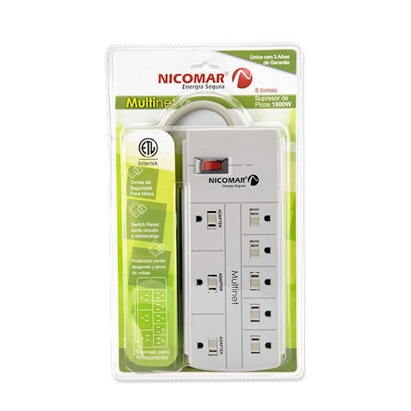 MULTINET 8T MULTITOMA CON SUPRESOR DE PICOS 8 TOMAS 1800W POWEST
