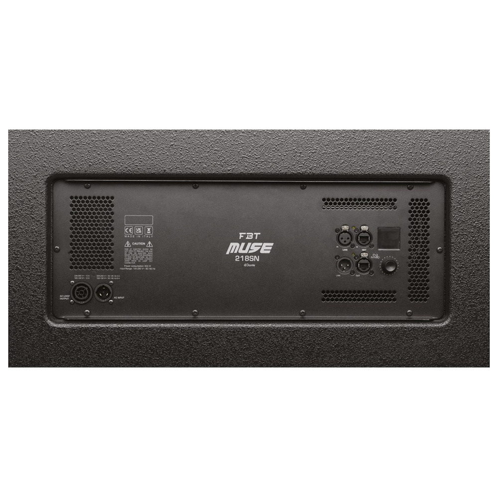 MUSE 218SA es un subwoofer de suelo de radiación directa, tiene dos altavoces B&C de 460 mm de largo recorrido con bobina móvil de 100 mm y amplificación de clase D de 4000 W, capaz de 148,5 dB SPL. El gabinete bass-reflex ofrece una energía sustancial de hasta 30 Hz y es ideal para extender y reforzar las bajas frecuencias del arreglo en línea MUSE 210LN en configuración de pila en el suelo.