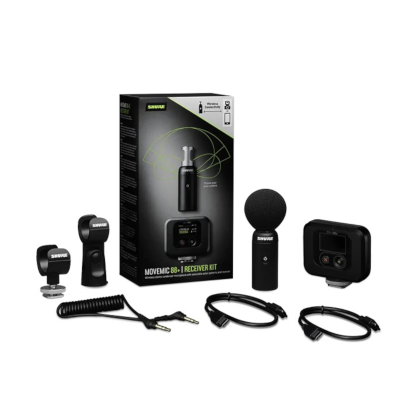 El MoveMic 88+ ofrece a los creadores total libertad para capturar audio de calidad profesional de forma inalámbrica: desde realización de películas hasta grabación de campo, periodismo móvil y videografía, este micrófono de video inalámbrico viene equipado con cuatro patrones polares seleccionables y un potente DSP integrado para un excelente sonido en cualquier situación. Conecte el micrófono directamente a su celular a través de las aplicaciones gratuitas Shure MOTIV™. O conéctese fácilmente a cámaras, computadoras y aplicaciones móviles de terceros con el kit receptor MoveMic 88+.