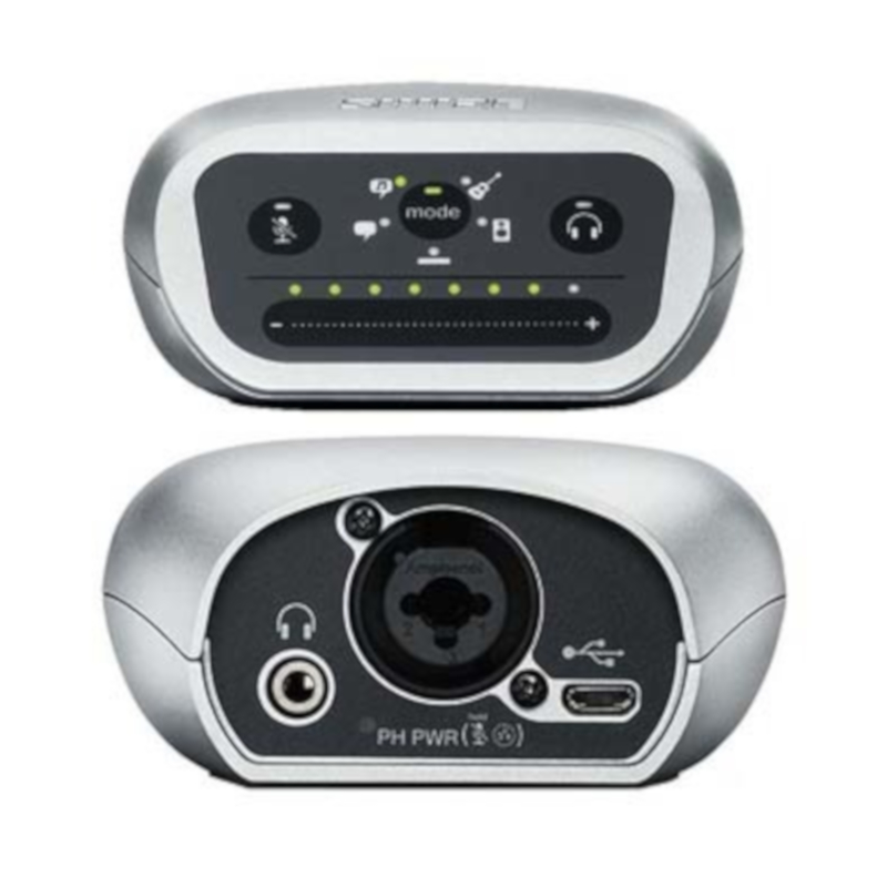 La interfaz USB PC/Móvil Shure de Grabación de Audio Digital MOTIV™ MVI-DIG conecta cualquier micrófono XLR o instrumento de 1/4″ (guitarra, bajo o teclados) a dispositivos iOS, Android, Mac o PC, creando un grabador de audio portátil de alta calidad para voces e instrumentos.