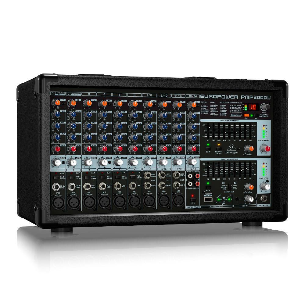 Calidad, potente y eficaz serían las mejores descripciones para la consola amplificada PMP2000D de BEHRINGER, una consola de gran rendimiento, potencia y calidad sonora, sus múltiples configuraciones de salida y sus dos ecualizadores gráficos asignables la hacen una consola muy eficaz y versátil.