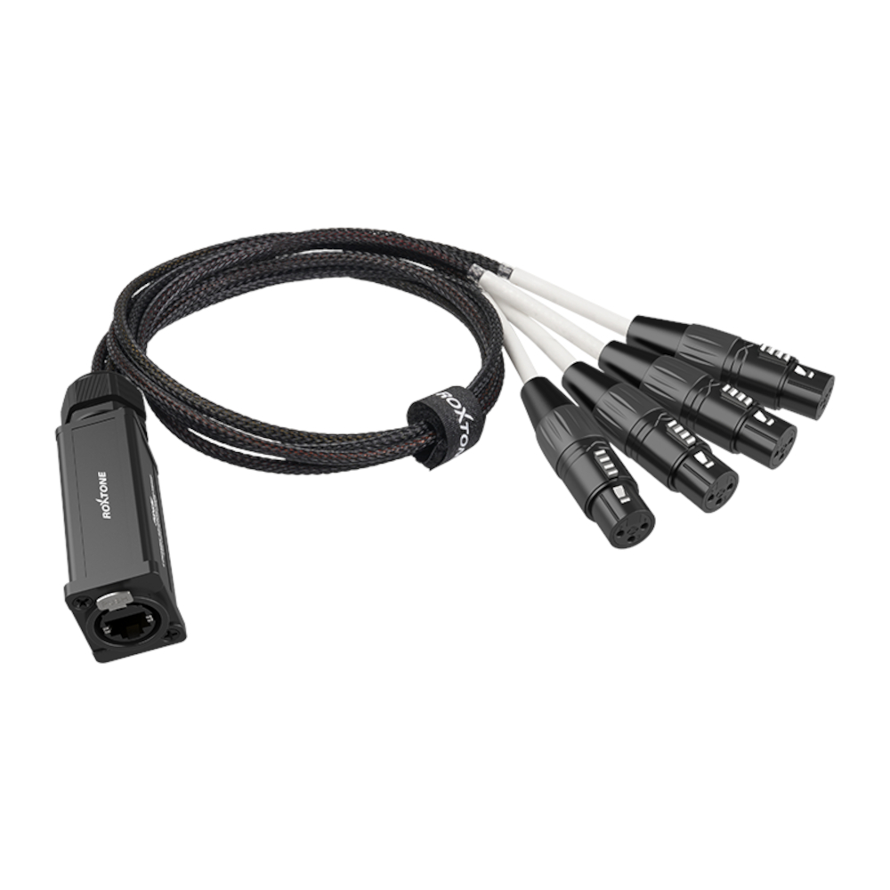 Espliter Análogo / Digital CAT5, 5E, 6, 6A o 7 para Transmitir y Recibir 4 Señales XLR Roxtone.