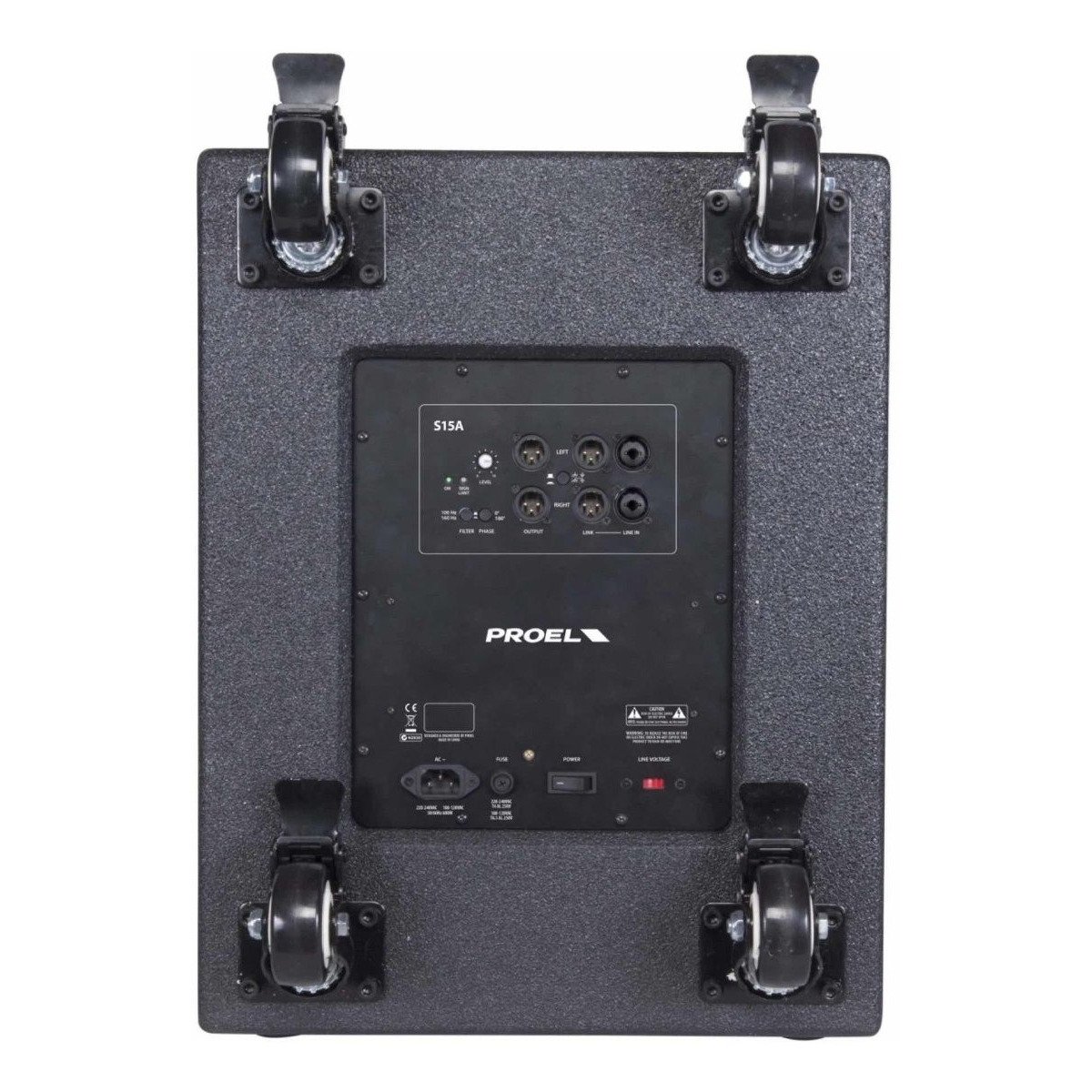 Los gabinetes están construidos con madera contrachapada de 15/18 mm y terminados con pintura de poliuretano extra duradera. Cuentan con dos asas al ras y cuatro ruedas resistentes de 75 mm para un fácil transporte (solo S15 y S18).