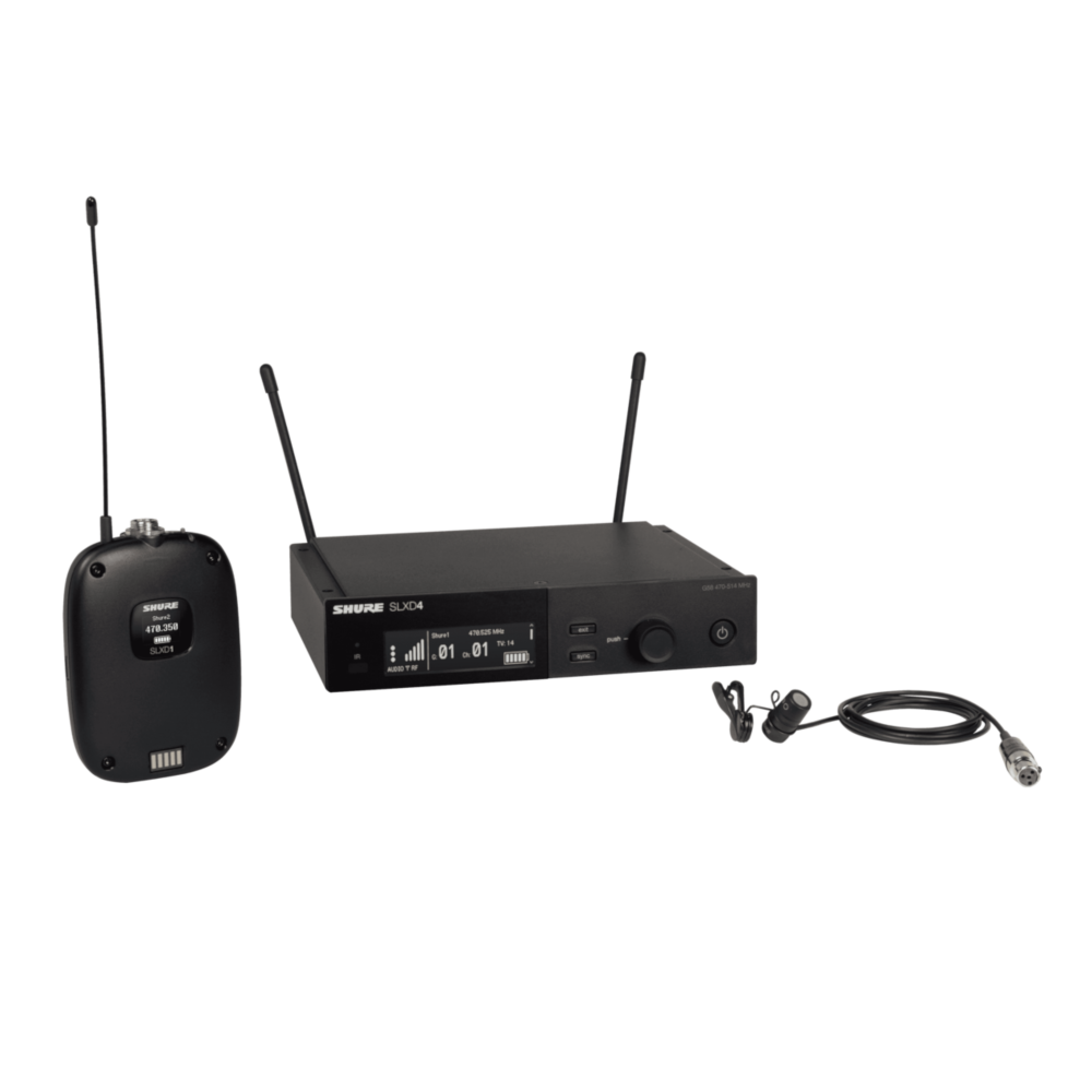 Sistema inalambrico SLXD con (1) transmisor tipo bodypack SLXD1, (1) micrófono de solapa WL185, (1) receptor digital SLXD4 sencillo