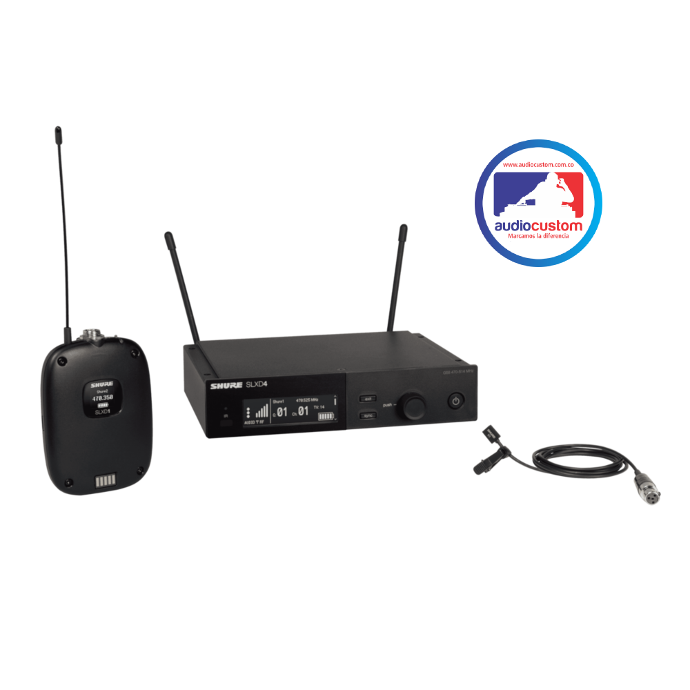 Sistema inalambrico SLXD con (1) transmisor tipo bodypack SLXD1, (1) micrófono de solapa WL93, (1) receptor digital SLXD4 sencillo