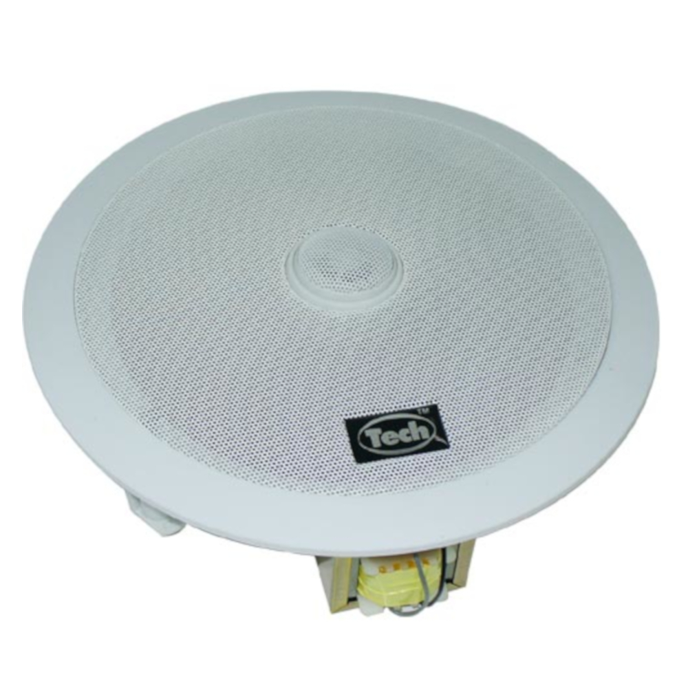 Parlante 5 1/4″ Ambiental con Transformador de Línea para incrustar en Techo: Tamaño Parlante: 5-1/4″; Linea de Voltaje: 70-100V; Impedancia: 8W; Potencia: 10/15/20W: Dimensión Hueco: Ø166mm; Dimensiones (AXB): Ø200x65mm Marca American Sound.
