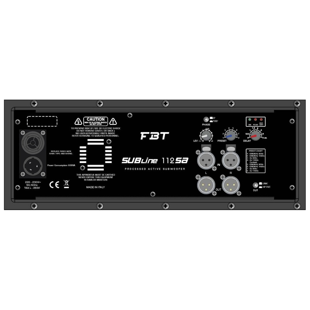 La línea SUB 112SA ha sido completamente rediseñada con una configuración bass-reflex, construida en madera contrachapada de abedul y destinada a extender la respuesta de baja frecuencia a una amplia gama de sistemas de altavoces FBT.