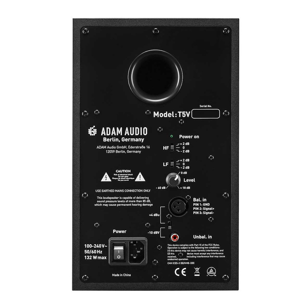 El MONITOR DE ESTUDIO ADAM T5V es un monitor de campo cercano de dos vías muy asequible y optimizado para salas de control pequeñas. Con su woofer de 5 “, la respuesta de frecuencia de graves del T5V se extiende a 45 Hz. El nuevo tweeter U-ART, una solución revolucionaria para uso en grabación y mezcla de alta resolución de bajo coste, alcanza hasta 25 kHz. La dispersión altamente uniforme de altas frecuencias que produce la guía de ondas proporciona un punto dulce increíblemente amplio. Esto nos libera de estar pegados a una posición de mezcla rígida mientras trabajamos.