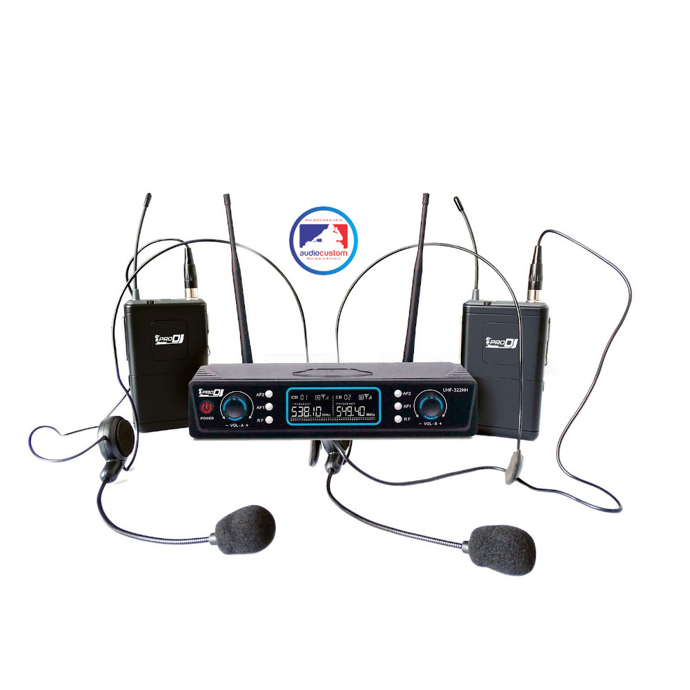 Microfono inalámbrico. •Kit de micrófono inalámbrico de dos transmisores (bodypack) con el que se puede conectar dos diademas y un cable de ts para instrumento. •Banda uhf entre 600 – 700 MHz (canal fijo). •Sistema de trasmisión PLL. •Alcance maximo 60 metros lineales. •Salidas balanceadas XLR y no balanceada mixta. •Operación con 2 baterías AA (incluida). •Incluye estuche para protección y transporte.