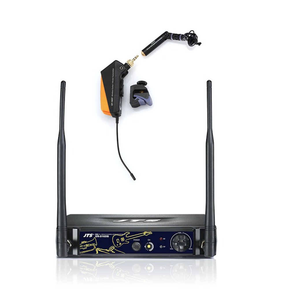 Este sistema verdaderamente ingenioso de JTS permite una fácil micrófono inalámbrico de una guitarra eléctrica/electro acústica o un instrumento de viento gracias al ajuste intercambiable de gato o micrófono. El sistema se compone del receptor de diversidad de un solo canal UR-816D PLL, con un transmisor de guitarra/vientos UHF UHF UT-16GT y transmisor de vientos subinicuarios UT-508GT. El sistema incluye