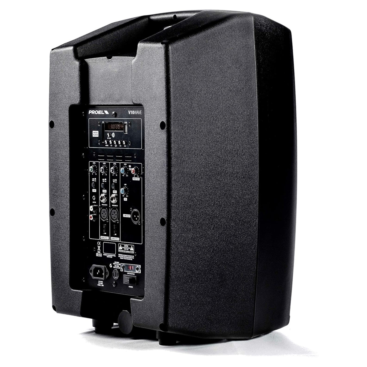 El mezclador de 3 canales incorporado, con controles de nivel independientes y un ecualizador de 2 bandas, incluye también dos entradas USB para conectar micrófonos inalámbricos PROEL U24H o U24B de 2,4 GHz con receptor USB. Estos sencillos sistemas inalámbricos, disponibles tanto con transmisor de mano como de petaca, se pueden conectar a los altavoces simplemente enchufando el receptor USB ultracompacto y ofrecen una transmisión de alta definición y sin interferencias gracias a la tecnología de 2,4 GHz. Los altavoces V WAVE se pueden usar en una variedad de aplicaciones, que van desde la difusión de voz y la reproducción de música hasta la música en vivo y los sets de DJ. Los gabinetes extremadamente versátiles se pueden montar en postes de altavoces estándar y el V12WAVE incluso está equipado con un asa extra estilo equipaje y dos ruedas.