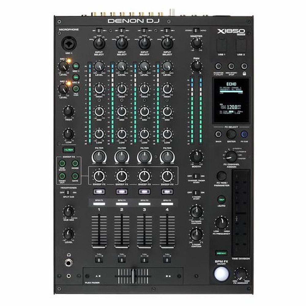 Mezclador digital de 4 canales con entradas multiasignables y Pro DJ FX X1850 de Denon DJ, Con una construcción de metal resistente, el X1850 es una «zona de comodidad para mezclar» para cualquier DJ. Tiene 4 canales con entradas multiasignables, cubriendo todas las necesidades de rendimiento de los conciertos. Una sección de ecualizador de 3 bandas de ‘alta visibilidad’ ofrece modos ‘normales’ y expresivos de ‘aislamiento’. El control de línea suave y crossfader maneja todos los estilos de mezcla Pro-DJ. Agregue efectos de audio dinámicos a la mezcla con 4 Sweep FX del X1850, contorneando las frecuencias con su potente filtro de paso bajo/alto. Sea creativo y expresivo con 16 Pro-Club BPM FX y Touchstrip ‘Time-Division’ del X1850. ¡El X1850 trae el control ‘FX Quantize’ para garantizar que todos los parámetros de efectos se alineen con sus ritmos! Multi I/O, 24-bit/96kHz ¡La conectividad de audio Prograde es solo el comienzo! El X1850 PRIME tiene un concentrador LAN integrado para conectar hasta cuatro reproductores multimedia ‘SC’, con información de tempo, transferencia ultrarrápida de archivos de música y conexiones audiovisuales StagelinQ. Una salida MIDI de 5 pines para iniciar/sincronizar equipo externo brinda aún más flexibilidad de rendimiento.